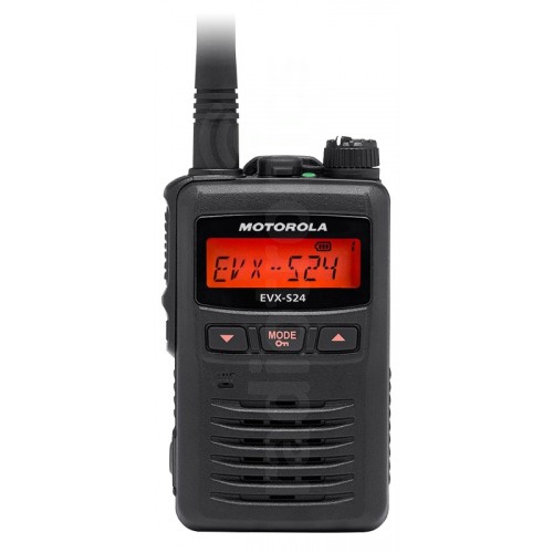 Motorola EVX-S24 is a compact digital DMR UHF two-way radio, designed for the hospitality, hotel and leisure sectors. With an IP67 rating although the EVX-S24 is a compact radio it is extremely robust and reliable. This Ingres protection rating ensures that not only does the EVX-S24 have full protection against dust intrusion but is also fully submersible in 1 meter of water for up to 30 minutes.